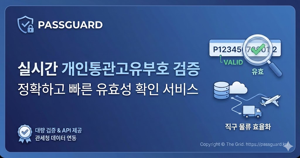 이름과 번호가 일치하지 않으면 세관에서 통관이 멈추고, 이는 곧 고객의 항의와 배송 지연으로 이어지기 마련인데요. 오늘은 이를 1초 만에 해결할 수 있는 PASSGUARD(패스가드) - https://pass.thegrid.co.kr